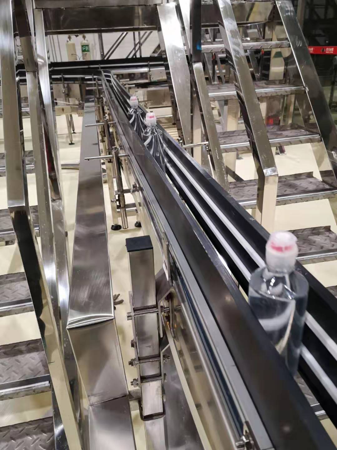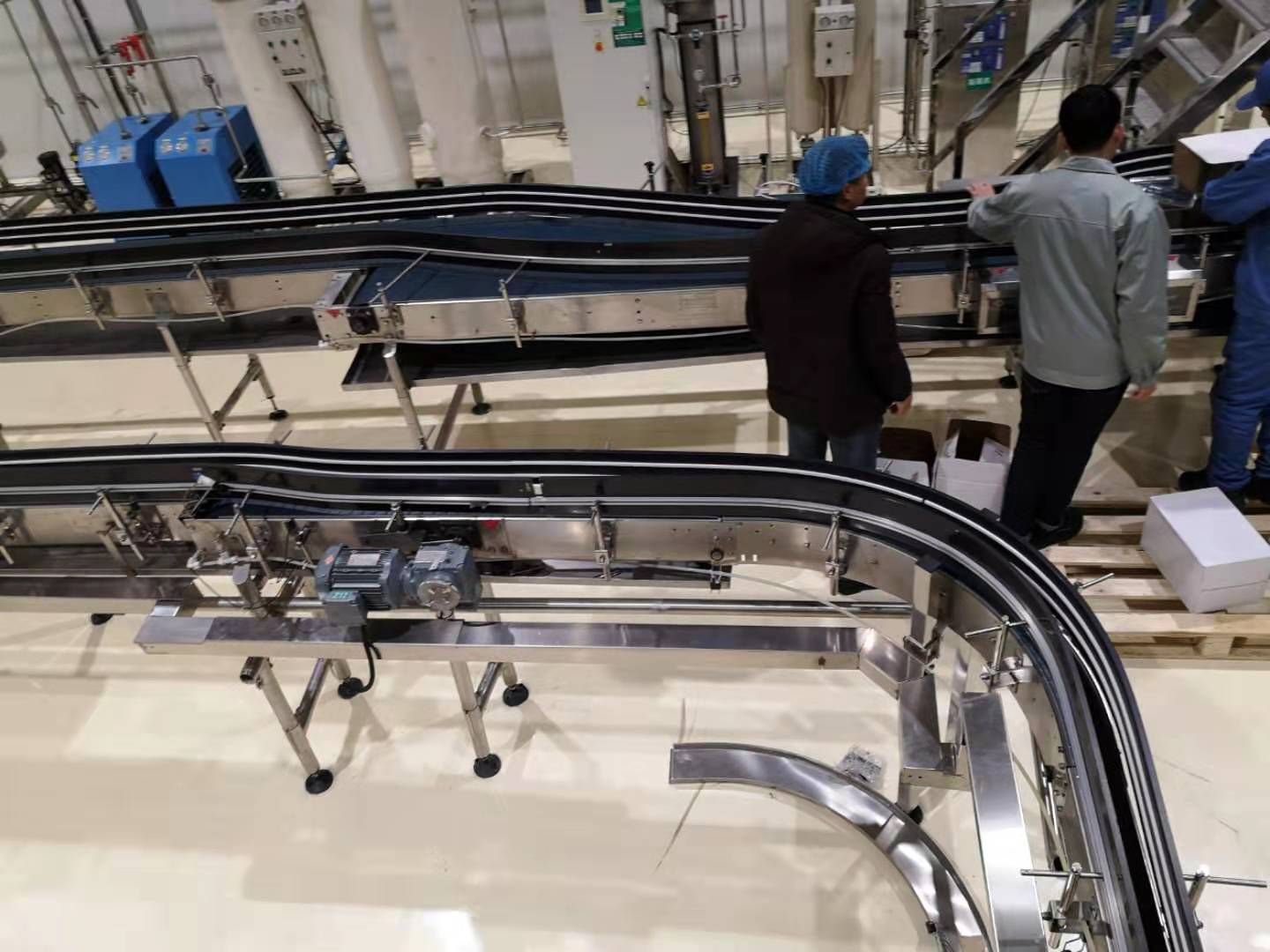 農夫山泉漠河工廠有一條其它 工廠搬遷過來的生產線,線上的產品較為陳舊,品種過于混雜,包括鏈板、耐磨條、彎道 、鏈輪、托輪等多數來自不同的廠家和品牌,屬于七拼八湊起來的設備。這樣的設備難以正常用于生產,并且不利于日常維護,潤滑液消耗也很大。